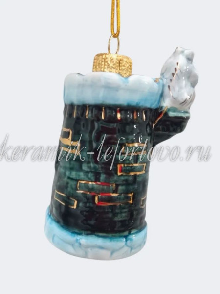 В канун Нового года и Рождества все люди, независимо от возраста, ожидают необычные подарки. Не важна его стоимость, важно, чтобы этот подарок создавал атмосферу праздника и домашнего уюта. Один из таких неординарных и красочных сувениров создали мастера Лефортовской керамики. Елочная игрушка "Башня" - изображение сказочной крепости с очаровательным медведем наверху. Купить новогодний сувенир, раскрашенный вручную и декорированный жидким золотом, можно в качестве елочного украшения, а также приятно сделать сказочный зимний подарок своим друзьям и близким. ДШВ 6,5 × 4,5 × 9,5 см.