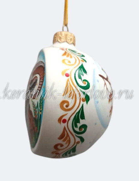 Елочная игрушка Шар плоский «Барашек» (цветная с золотом), 0,05 л, ШФ-053С