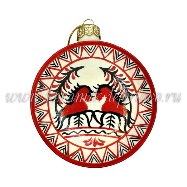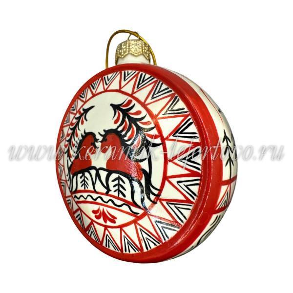 Елочная игрушка Шар плоский «Мезенские кони» (цветная с золотом), 0,05 л, ШФ-053С