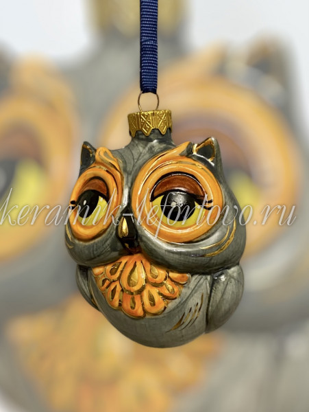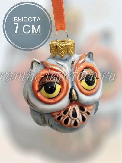 Сова - это прекрасный символ эрудиции и чуткости, пророческого дара и мудрости. У вас есть знакомый или друг с такими качествами? Тогда купите ему этот елочный аксессуар в качестве веселого новогоднего подарка! Красочная сова, созданная и расписанная вручную российскими мастерами Лефортовского фарфора и керамики, - необычный высокохудожественный сувенир, который оценят по достоинству также любители неординарных миниатюрных фигурок.